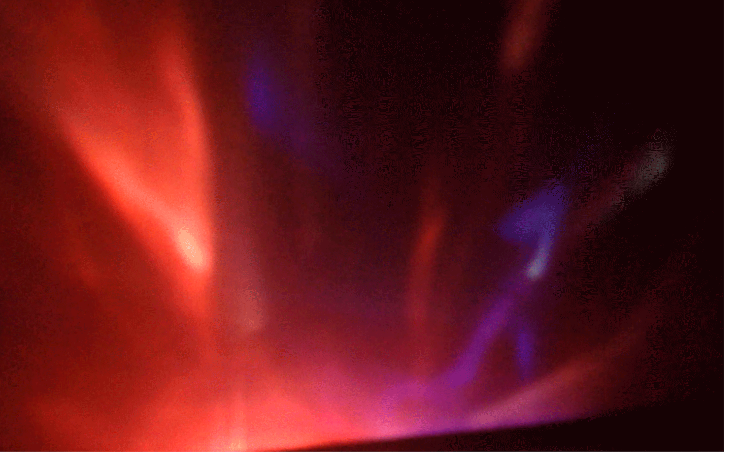 By using the cellophane as a vessel to alter and refract the projected light, the form creates a softened image that ultimately changes the quality that the scrunched up cellophane provides on its own. The blue coloured image combined with the red cellophane creates an experience that fuses the colures together resulting in the addition of pinks and purples at some stages of motion. The space produced is essentually more ephemeral in nature that the material offers and is expressed effectively through movement.