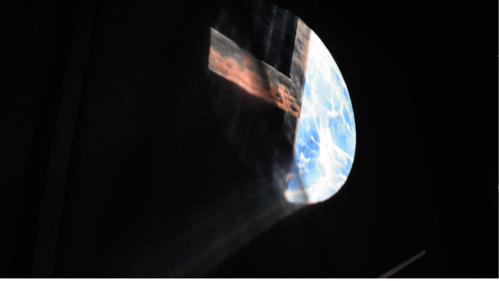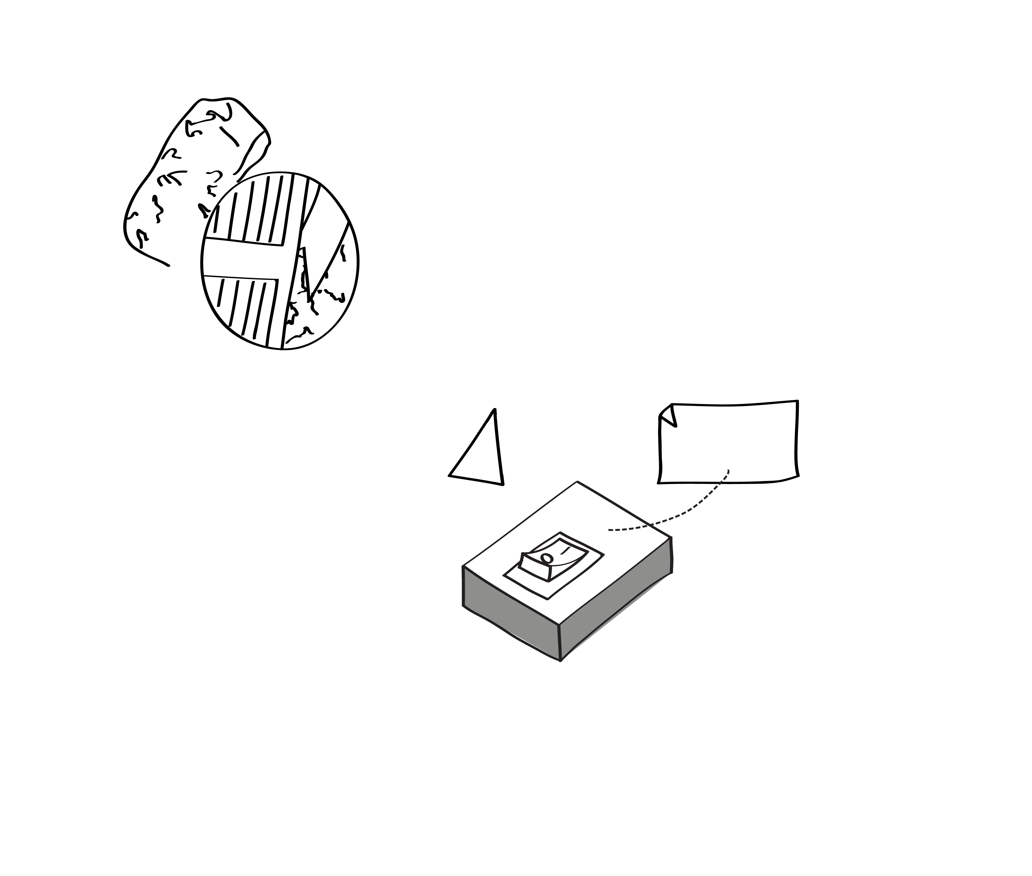 A piece created by layers of projections onto spaces and photo- graphing and layering them onto other textured areas. This creates a state where more than one material is layered resulting in a abstractly produced image. By using an acrylic, geometric object to contort the projection, the space is broken up into blurred and clear areas. The image combined with capturing the movement effectively aids in establishing a transitioning space.